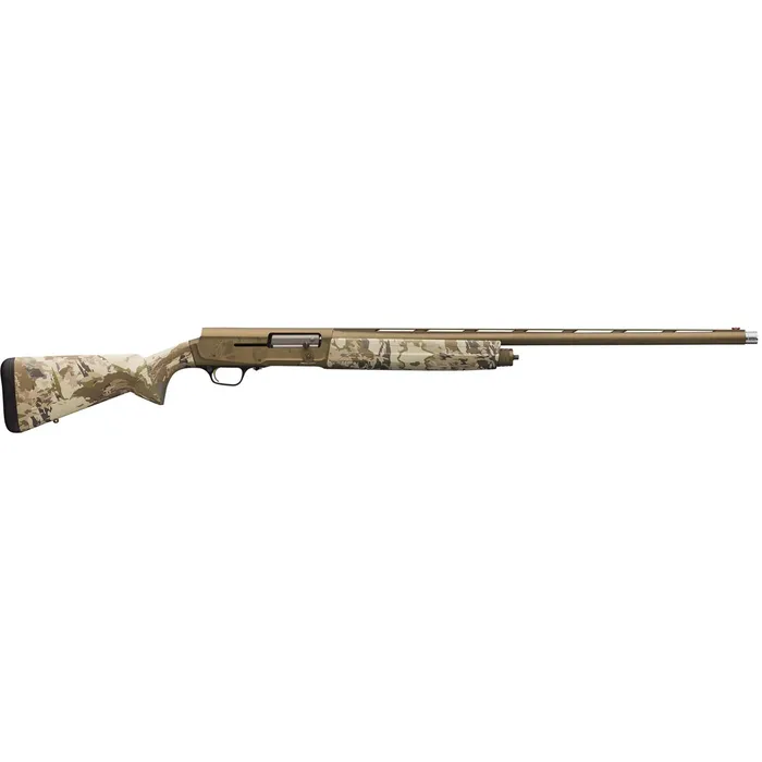 bone-damaging. Waterfowlers can select an autoloader with unique features that truly set it apart in the marsh—in a positive way—with the A5 Wicked Wing. The receiver and barrel of the A5 Wicked Wing are both finished in Cerakote Burnt Bronze camouflage. It is easy to handle with gloves thanks to the large bolt release. A thoroughly chromed bore increases lifespan and resistance to corrosion for consistent shooting performance year after year.